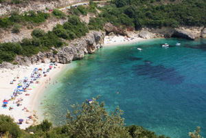 GallikosThis beach is near the village of Syvota, Its waters are warm and the sand is rich. There is a shop nearly where one can enjoy his coffee and have a bite to eat. |